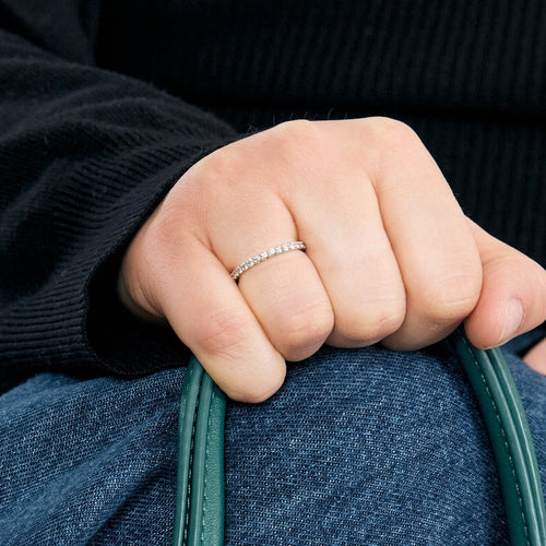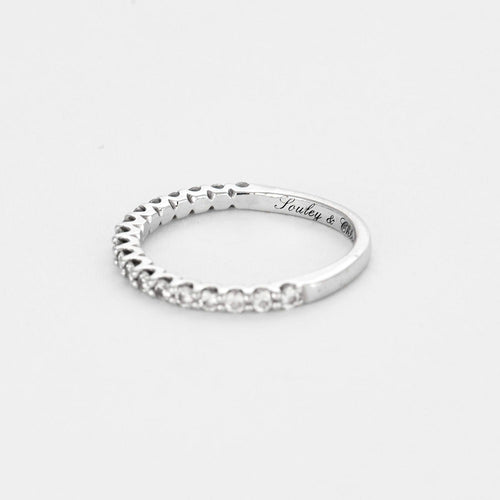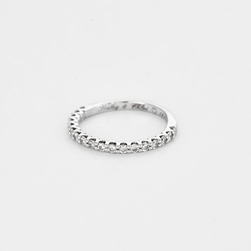 Half Wedding band in 18K (750 thousandths) white gold set with eighteen diamonds weighing a total of approximately 0.35 carats.