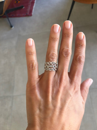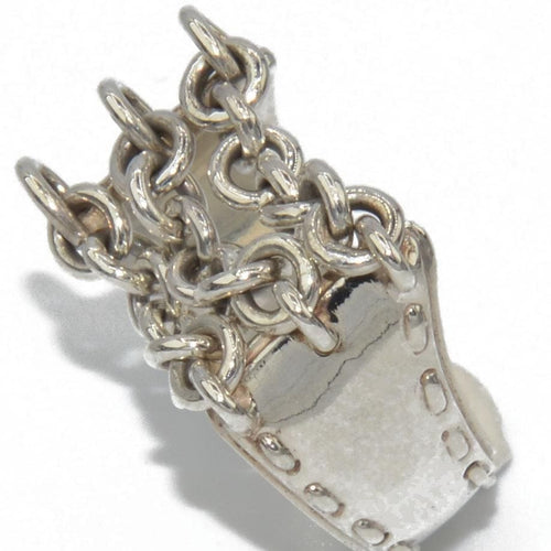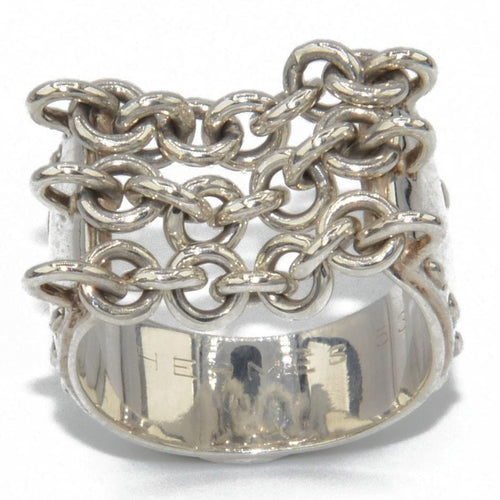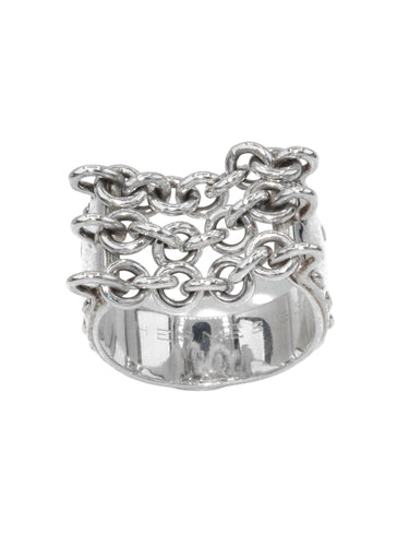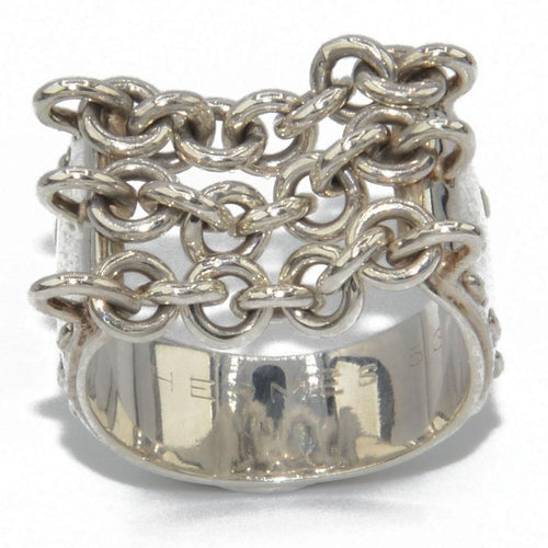 Ring silver from the house of Hermès with patterns of 3 chains on a flat ring chiseled on both sides.
