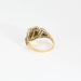 Ring Art Deco in 18K (750 thousandths) yellow gold and platinum (950 thousandths), decorated with a pearl button in pearl setting supported by a geometric decoration paved with rose-cut diamonds in pearl setting.