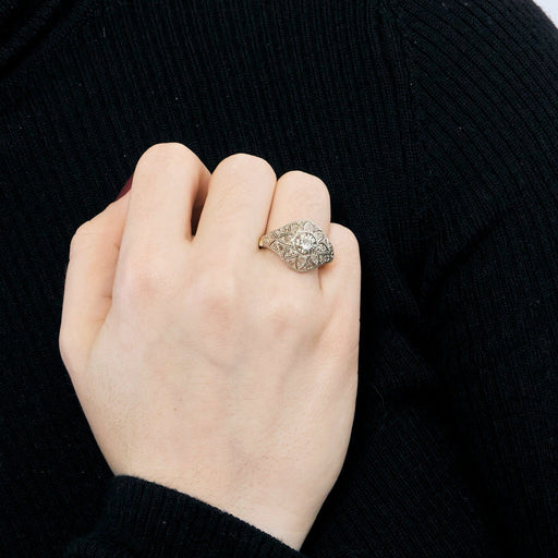 Belle Époque ring, 1920, in 18k (750 thousandths) yellow gold and platinum (950 thousandths), set with old-cut diamonds weighing approximately 0.20ct