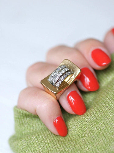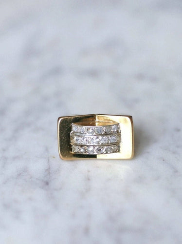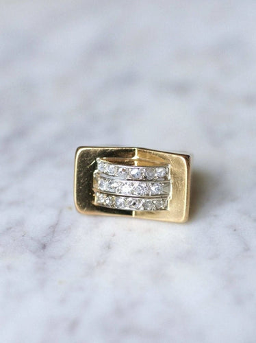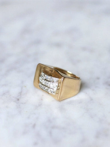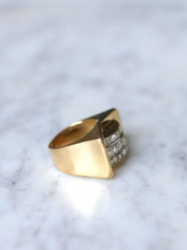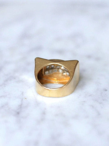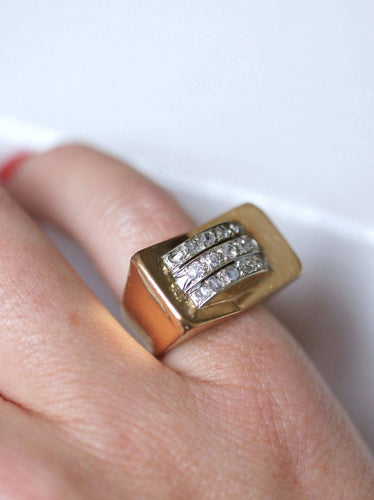 Signet ring tank composed of an 18Kt yellow gold setting and platinum (hallmarks: owl) set with old-fashioned and rose-cut diamonds (total weight estimated at approximately 0.50 Ct).