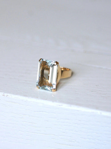 Vintage 15 Cts Aquamarine Cocktail Ring in Rose Gold
