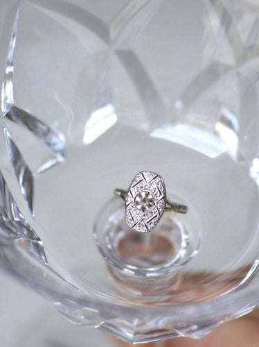With its rectangular shape and its tray decorated with geometric patterns, this old ring is the engagement ringArt Deco par excellence.