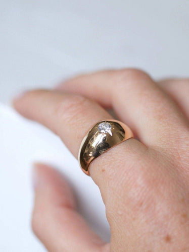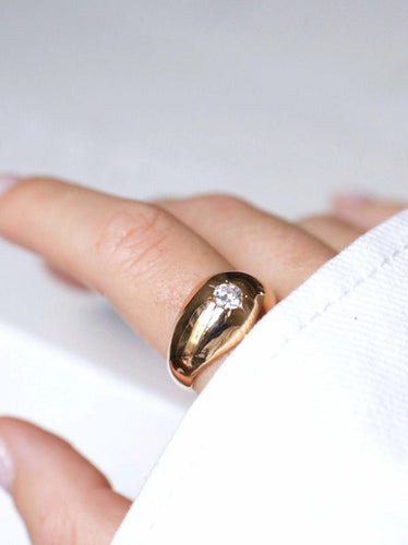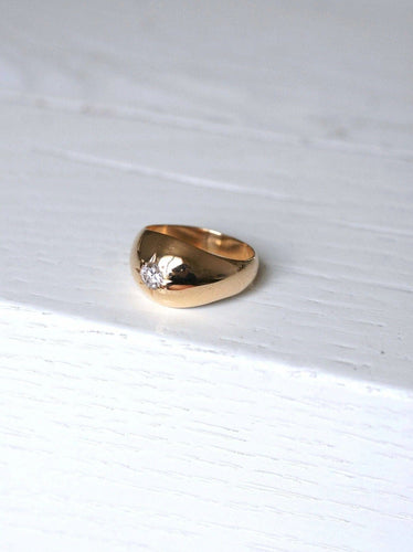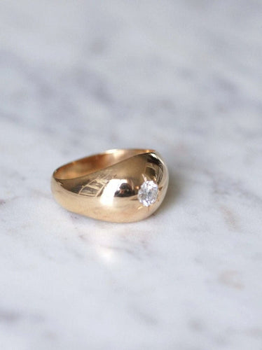 Domed bangle ring in 18kt pink gold (eagle's head hallmark) adorned in a star setting with a brilliant cut diamond whose weight is estimated at approximately 0.50 Ct, purity VS2, and color H.
