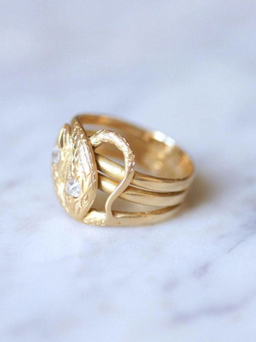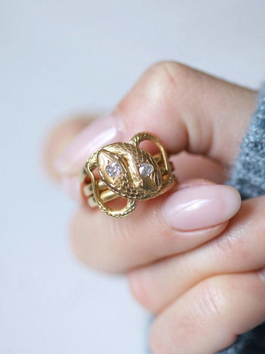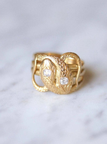 Old coiled snakes ring in yellow gold and diamonds
