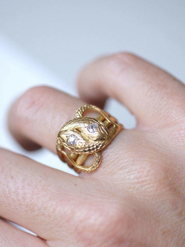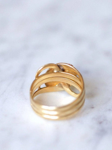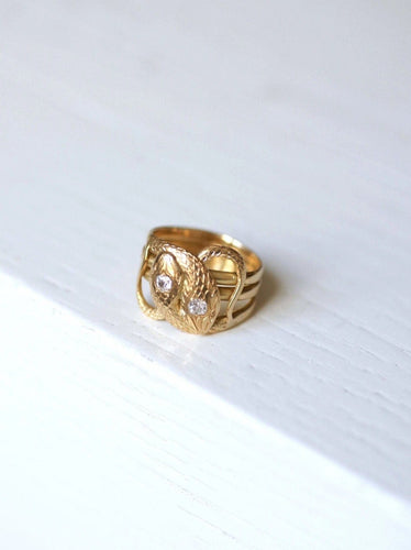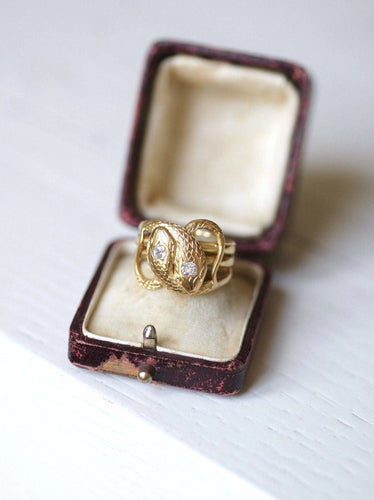 This old ring illustrating snakes coiled on themselves is a rare and precious unique piece. The snake represents immortality. Like other animals, which enter and emerge underground (for example the beetle), snakes are symbols of Rebirth. A ring in line with our values and our desire to give a second life to antique jewelry.
