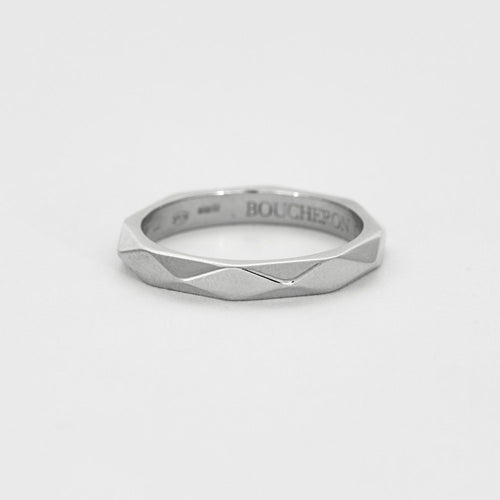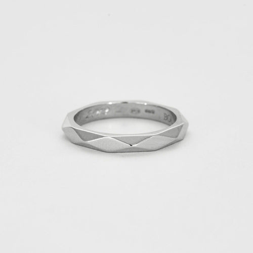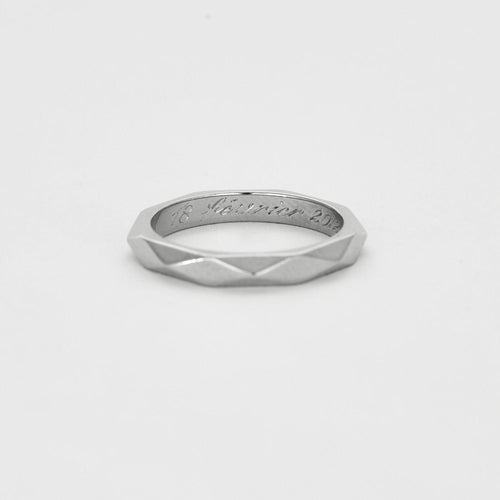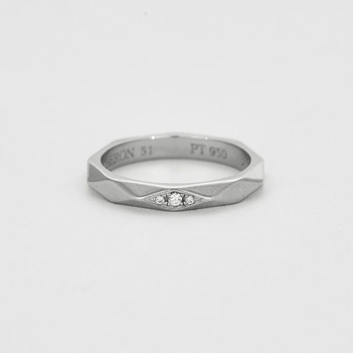 Alliance “Facets” in platinum (950 thousandths) decorated with three small brilliant-cut diamonds.