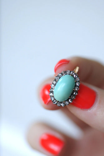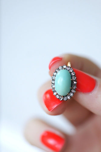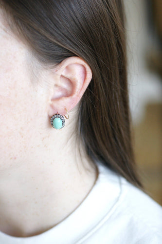 Turquoise earrings surrounded by diamonds