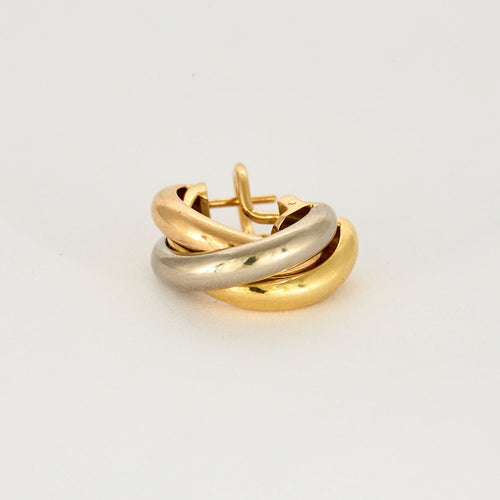 Earrings from the collection Trinity classic three-gold model: yellow gold (750 thousandths), white gold (750 thousandths), pink gold (750 thousandths). System for pierced ears with rod and safety racket. branded and numbered.