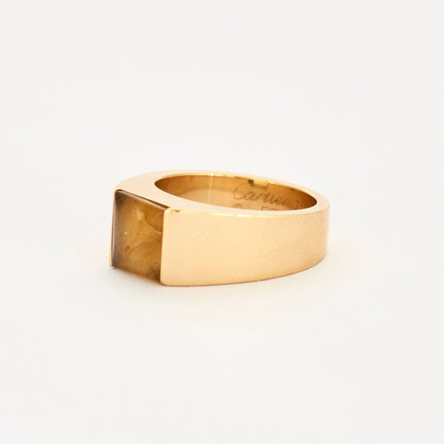 Signet ring in 18K (750 thousandths) yellow gold adorned with a buffed citrine. branded Cartier, numbered, maker's mark.