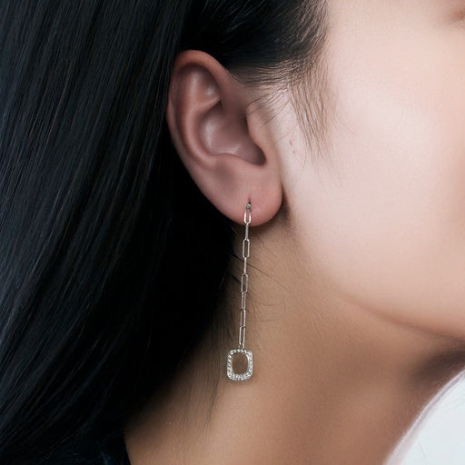 18k (750 thousandths) white gold pendant earrings, each composed of a chain with oblong links holding square motifs paved with round brilliant-cut diamonds. System for pierced ears with ALPA posts and clasp. branded Dinh Van.