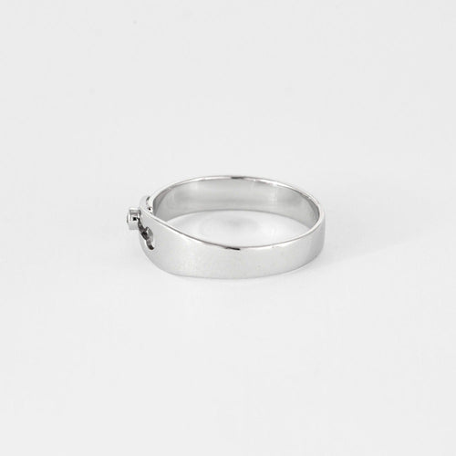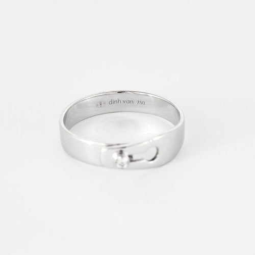 DINH VAN- Lock - 18K (750 thousandths) white gold ring with crossed and openwork band set with a brilliant-cut diamond weighing 0.05 carats.