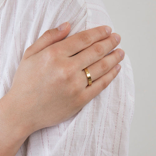 - Bangle ring in 18K (750 thousandths) yellow gold chiseled with stylized screw patterns.