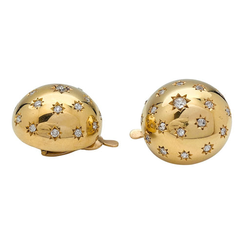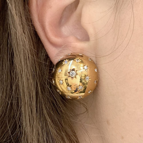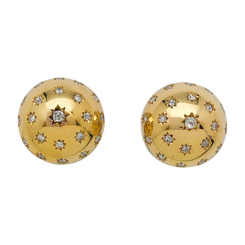 A pair of half-sphere earrings in 750/000 yellow gold, studded with 8/8-cut and old-cut diamonds in a star setting.