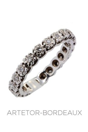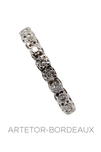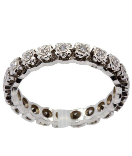 In perfect condition, this old full circle wedding ring is set with diamonds.
