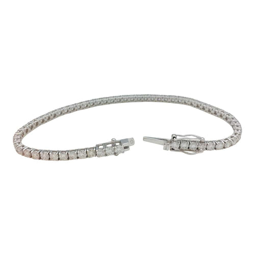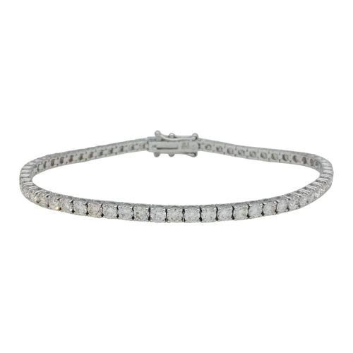 A line bracelet in 750/000 white gold entirely set with sixty-two brilliant-cut diamonds. Total diamond weight: 5 carats.