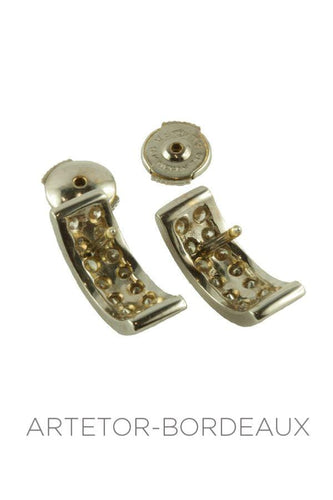 These lovely modern earrings are set with brilliant-cut diamonds totaling approximately 2 carats.