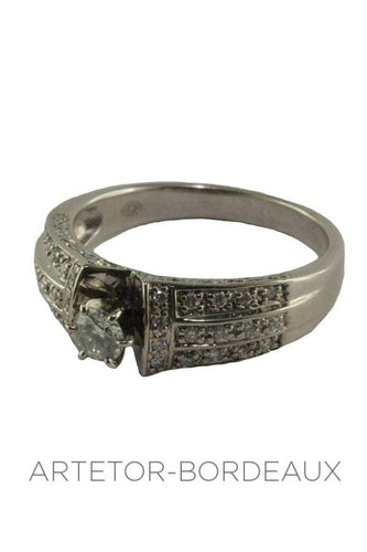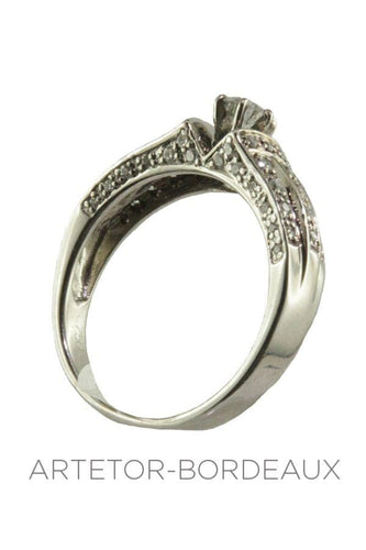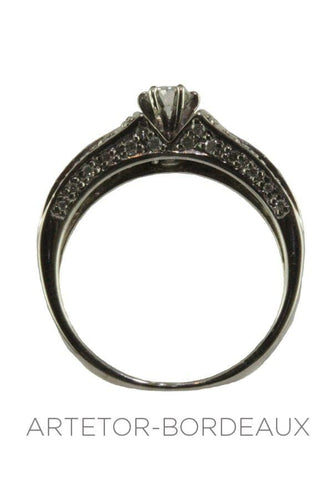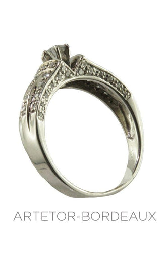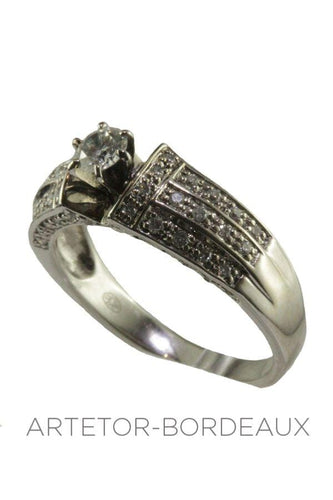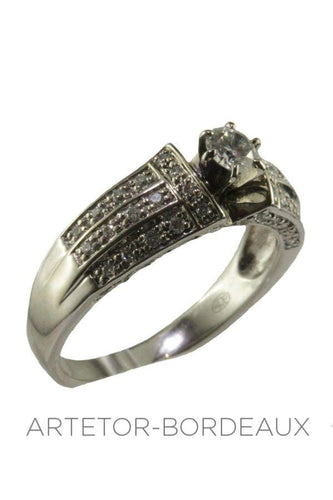 This modern jewelry-inspired ring is set with a 0.25 carat central diamond and a 0.98 carat pavé.