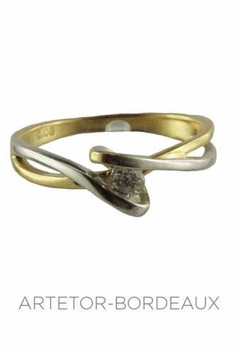 This modern solitaire in perfect condition is set with a 0.08 carat diamond.