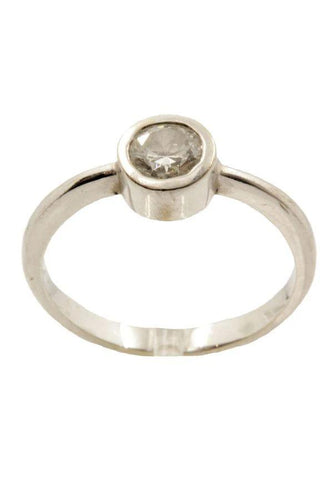This modern solitaire is set with a 0.56 carat diamond in a bezel setting.