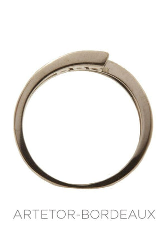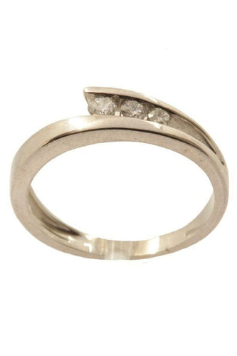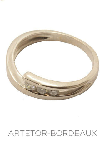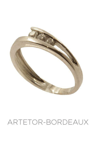 This pretty ring with modern curves, fully repolished, is set with 3 brilliant-cut diamonds.