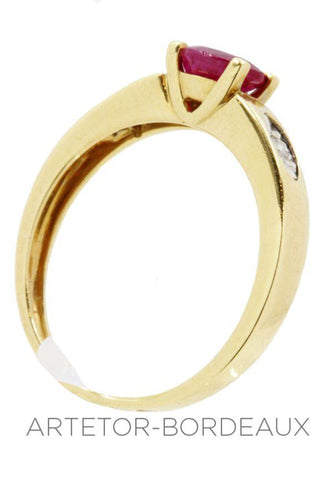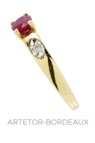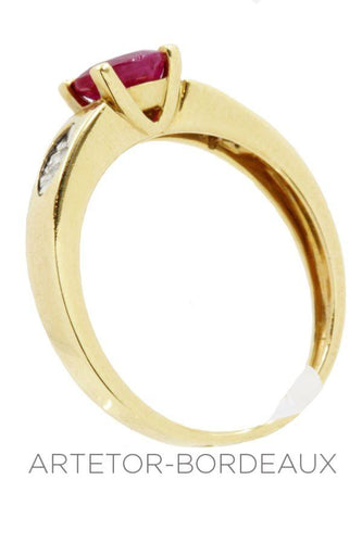 This modern ring is set with a 0.30 carat ruby and diamonds.