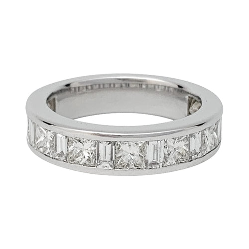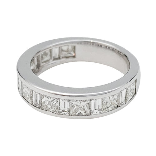 A half-alliance ring in 750/000 white gold set with princess and baguette diamonds.