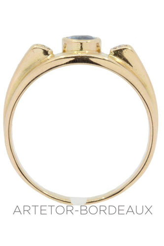 This modern ring is set in its center with a sapphire of approximately 0.52 carat.