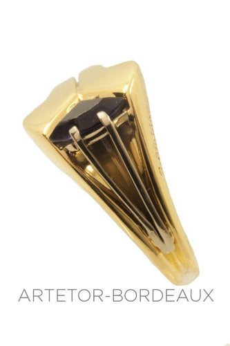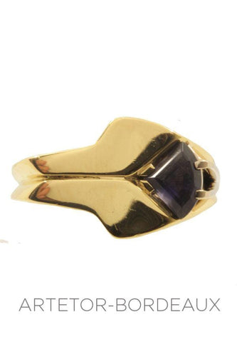 This ring in perfect condition has a very contemporary shape and is set with a tourmaline.