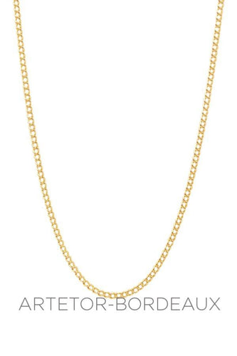 This chain is made of curb link, the most common link in jewelry, the clasp is a carabiner.