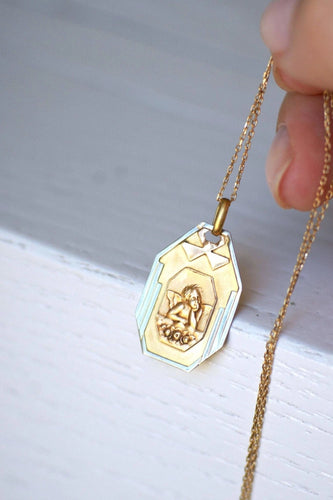 With its octagonal shape and geometric patterns, this old pendant is the medal Art Deco par excellence.