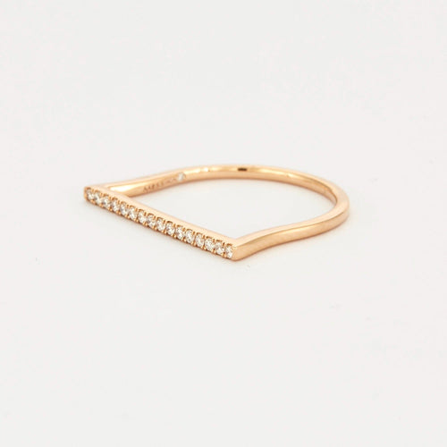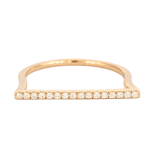 Messika ring in 18K (750 thousandths) yellow gold with geometric decoration adorned with a line of 16 brilliant-cut diamonds, weighing approximately 0.01 carat, claw setting. Ring branded and numbered by the house.