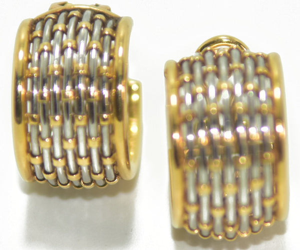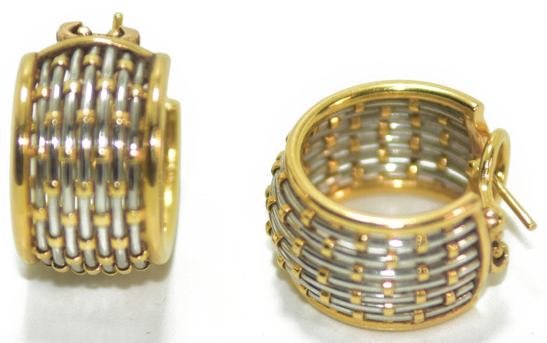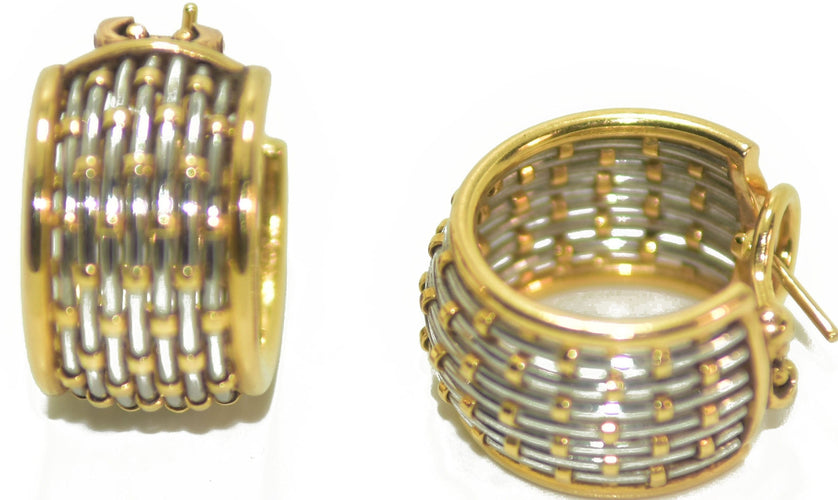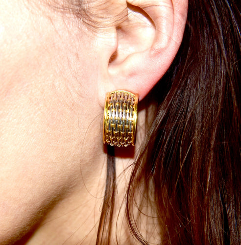 Pair of gold and steel earrings, branded of the House Cartier vision model weaving decor.