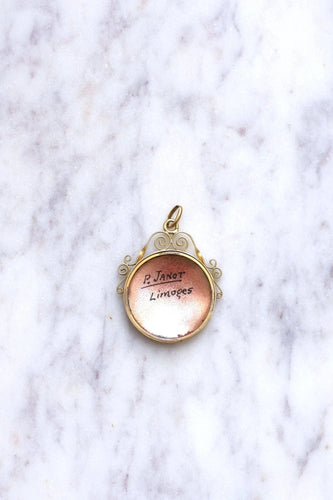 Back bearing the name of the artisan enameler "P. Janot" as well as 'Limoges'.