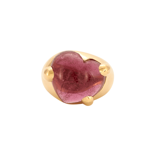 - POMELLATO - Important ring in 18K (750 thousandths) yellow gold, adorned with a pink tourmaline cut into a cabochon, set with three claws.