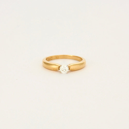 18K (750 thousandths) yellow gold bangle ring, centered with a brilliant-cut diamond weighing approximately 0.20 carats in a four-prong setting.